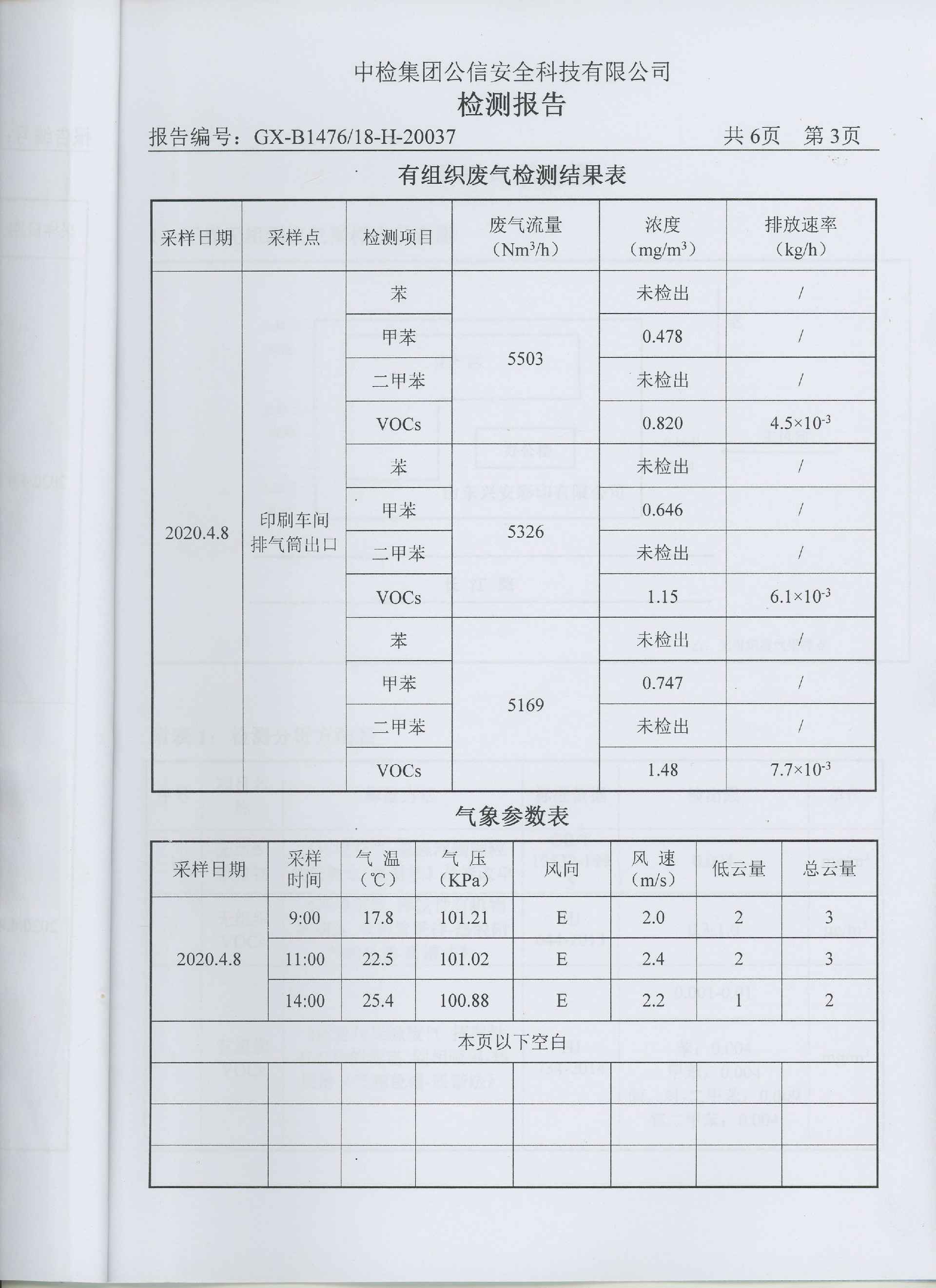 乐鱼官网-乐鱼(中国)一站式体育服务一直把环保治理工作作为企业发展重中之重,根据市区生态环境保护局要求于2017年8月份率先上了Ⅴ0Cs环保处理设备,印刷车间废气通过收集风管,进入过滤器,将空气颗粒物过滤掉,经过光催化氧化分解剩余有机废气,同时由离子氧化进一步处理残余废气,将有机废气氧化成二氧化碳和水,通过烟囱引高排。2018年2月经有关环保专家验收合格,有机挥发物排放达标。每季度都委托枣庄公信安全科技公司对公司有机挥发物废气各项指标进行检测,下图为最新监测数据: